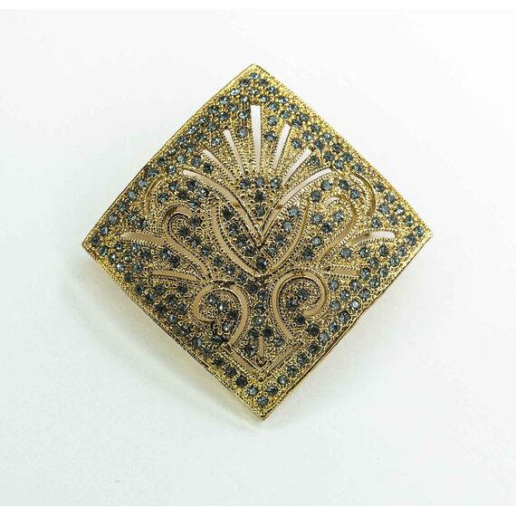 Брошь из гипоаллергенного ювелирного сплава желтого цвета. Вставка- цирконы голубого цвета. Высота брошки-5,0см, ширина-5,0см. Застежка- булавка.