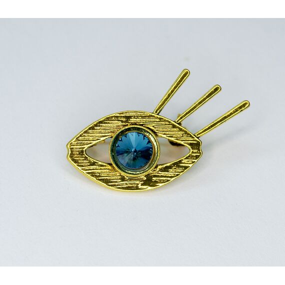 Брошь из гипоаллергенного ювелирного сплава желтого цвета. Вставка- ювелирное стекло , цвет- голубой. Высота брошки-2,5см, ширина-4см. Застежка- булавка.