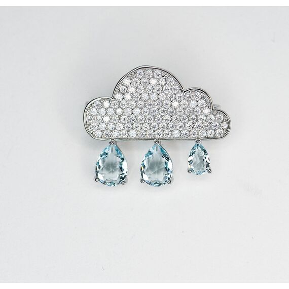 Брошь из гипоаллергенного ювелирного сплава серого цвета. Вставка- цирконы белого и голубого цвета. Высота броши-2,0см, ширина-2,5см. Застежка- булавка.