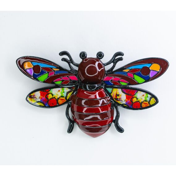 Брошь из гипоаллергенного ювелирного сплава черного и серого цвета. Без вставок. Покрытие эмалью, цвет- черный, коричневый, красный, зеленый, голубой. Высота броши-4,0см, ширина-7,0см. Застежка- булавка.