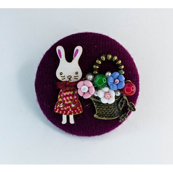 Брошь из гипоаллергенного ювелирного сплава серого, желтого цвета и красного текстиля. Вставка- фигурки из пластика, цвет-белый, зеленый, синий и дерева белого цвета. Высота брошки-5,0см, ширина-5,0см. Застежка- булавка.