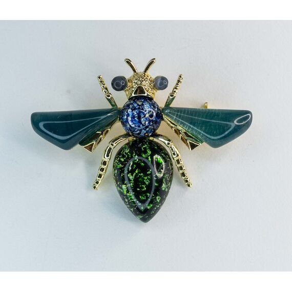 Брошь из гипоаллергенного ювелирного сплава желтого цвета и эпоксидной смолы, цвет-зеленый, синий, бирюзовый. Высота брошки-4,5см, ширина-6,0см. Застежка- булавка.