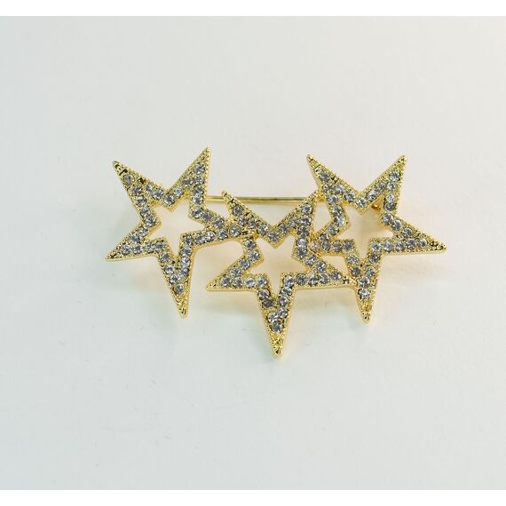 Брошь из гипоаллергенного ювелирного сплава желтого цвета. Вставка- ювелирное стекло белого цвета. Высота броши-2,5см, ширина-5,0см. Застежка- булавка.