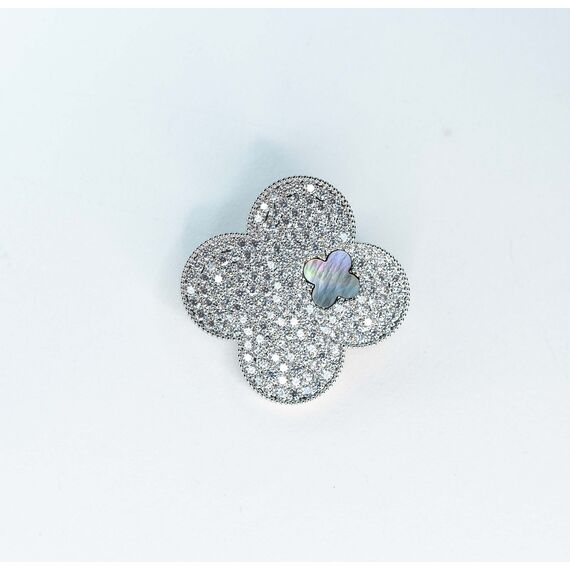 Брошь из гипоаллергенного ювелирного сплава серого цвета. Вставка- цирконы , цвет- белый. Высота броши-3,5см, ширина-3,5см. Застежка- булавка.