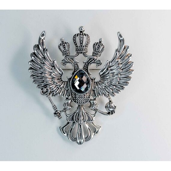 Брошь из гипоаллергенного ювелирного сплава серого цвета. Вставка- ювелирное стекло , цвет- серый. Высота брошки-5см, ширина-4,5см. Застежка- булавка.