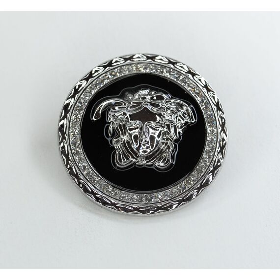Брошь из гипоаллергенного ювелирного сплава серого цвета. Вставка- ювелирное стекло, цвет- белый. Покрытие эмалью черного цвета. Диаметр брошки-3,2см. Застежка- булавка.