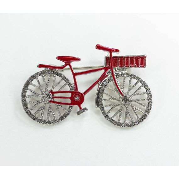 Брошь из гипоаллергенного ювелирного сплава серого цвета. Покрытие эмалью, цвет- красный. Вставка- ювелирное стекло белого цвета. Высота броши-2,5см, ширина-5см. Застежка- булавка.