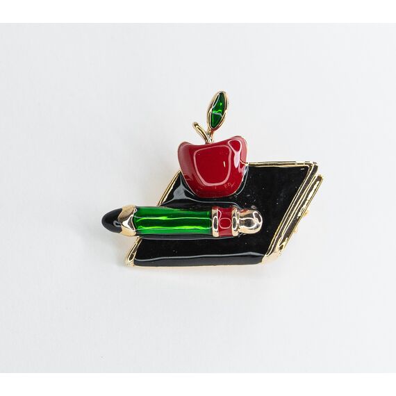 Брошь из гипоаллергенного ювелирного сплава желтого цвета. Покрытие эмалью черного, красного и зеленого цвета. Без вставок. Высота броши-2,0см, ширина-2,5см. Застежка-булавка.