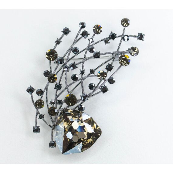 Брошь из гипоаллергенного ювелирного сплава, цвет- серый. Вставка- ювелирное стекло, цвет-серый. Застежка- булавка. Высота брошки-7,0см, ширина-4,0см.