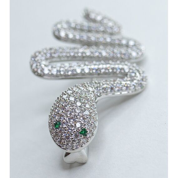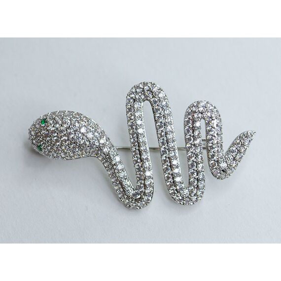 Брошь из гипоаллергенного ювелирного сплава желтого цвета. Вставка- циркон, цвет- белый и зеленый. Высота броши-4,0см, ширина-2,5см. Застежка- булавка.