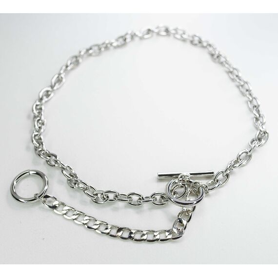 Колье из гипоаллергенного ювелирного сплава серого цвета. Колье из крупных звеньев, замок - тогл. Длина колье может быть 40,0см и 50,0см, за счет имеющихся колец на расстоянии 10,0см.
