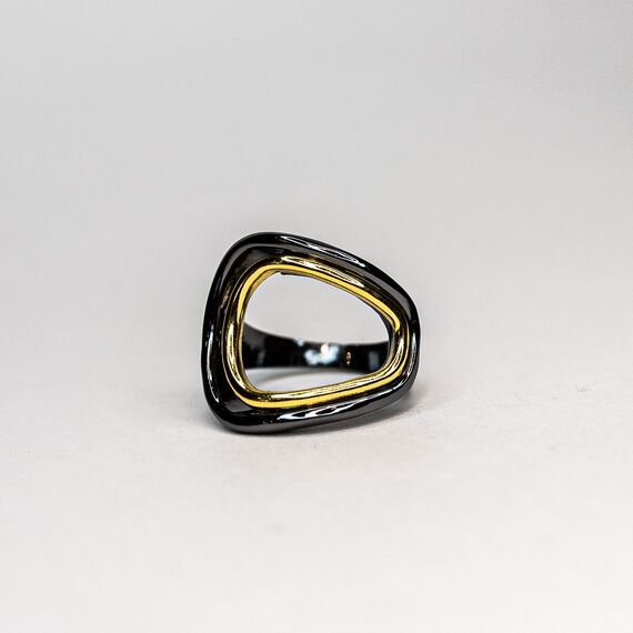Кольцо женское из гипоаллергенного ювелирного сплава черного и желтого цвета. Без вставок. Высота кольца-2см, ширина-2см. Размер-18,0.