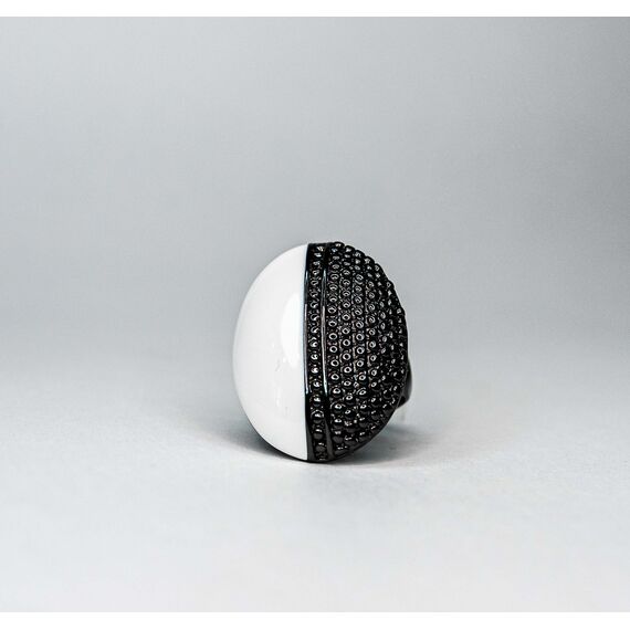 Кольцо из гипоаллергенного ювелирного сплава черного цвета. Без вставок. Покрытие - эмаль белого цвета. Высота кольца - 3,5см, ширина - 2,5см. Размер - 17,0.
