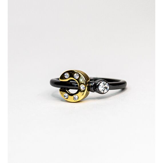 Кольцо женское из гипоаллергенного ювелирного сплава желтого и черного цвета. Вставка- ювелирное стекло белого цвета. Высота кольца-0,8см, ширина-2см. Размер-19,0.