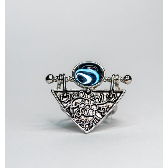 Кольцо из гипоаллергенного ювелирного сплава серого цвета. Вставка- улексит (кошачий глаз), цвет-голубой. Высота кольца-3,5см, ширина-2,2см. Размер кольца-17,0.
