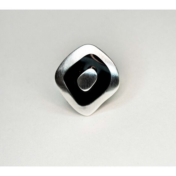 Кольцо женское из гипоаллергенного ювелирного сплава серого цвета. Без вставок. Покрытие эмалью черного цвета. Высота кольца-3см, ширина -2,6см. Размер-17,0.