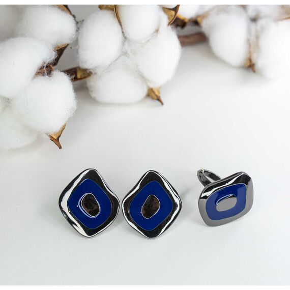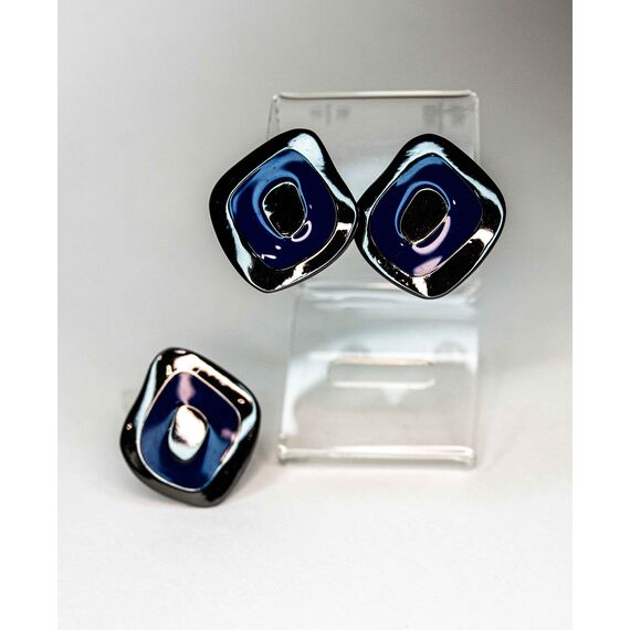 Кольцо женское из гипоаллергенного ювелирного сплава черного цвета. Без вставок. Покрытие эмалью синего цвета. Высота кольца-3см, ширина -2,6см. Размер-18,0.