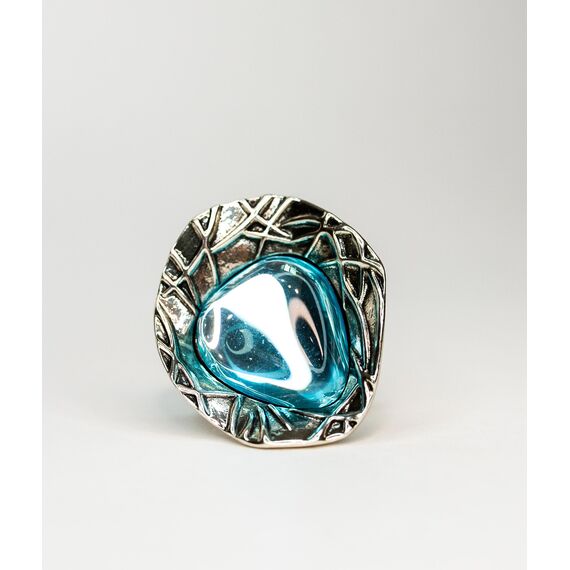 Кольцо из гипоаллергенного ювелирного сплава серого цвета. Вставка- улексит ( кошачий глаз), цвет- голубой. Высота кольца-3см, ширина-3,5см. Размер-18,0.