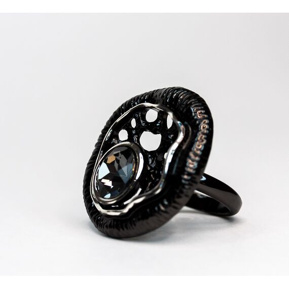 Кольцо из гипоаллергенного ювелирного сплава черного и серого цвета. Вставка- ювелирное стекло ( диаметр камня-1,3см) ,цвет- серый. Высота кольца-3см, ширина-3см. Размер кольца-18,0.