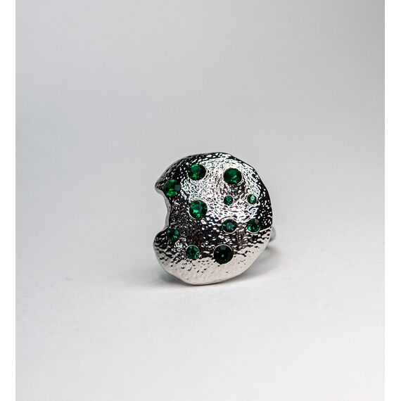 Кольцо из гипоаллергенного ювелирного сплава серого цвета . Вставка- ювелирное стекло зеленого цвета.Высота кольца-2,5см, ширина-2см. Размер-17,0.
