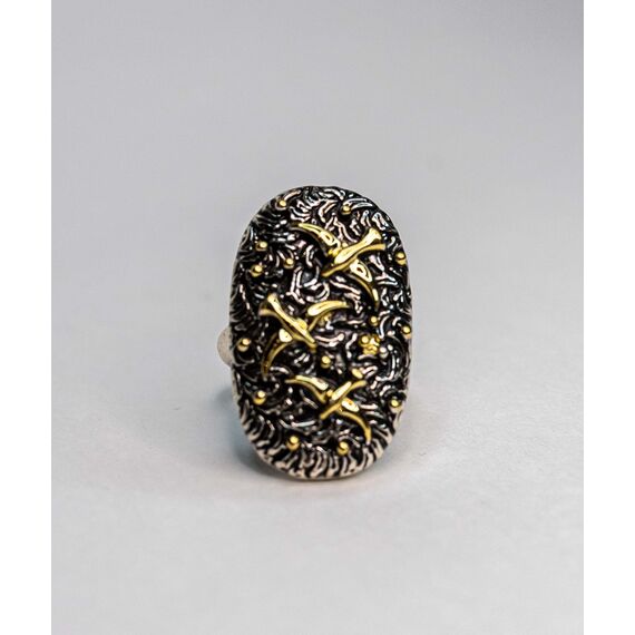 Кольцо из гипоаллергенного ювелирного сплава желтого и серого цвета. Без вставок. Высота кольца-3см, ширина-2см. Размер-17,0.