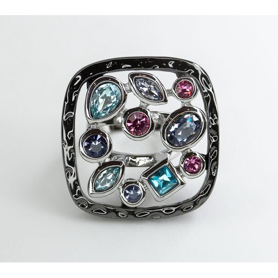 Кольцо из гипоаллергенного ювелирного сплава черного и серого цвета. Вставка- кварц , цвет-зеленый, голубой, розовый. Высота кольца-3см, ширина-3см. Размер-18,0.