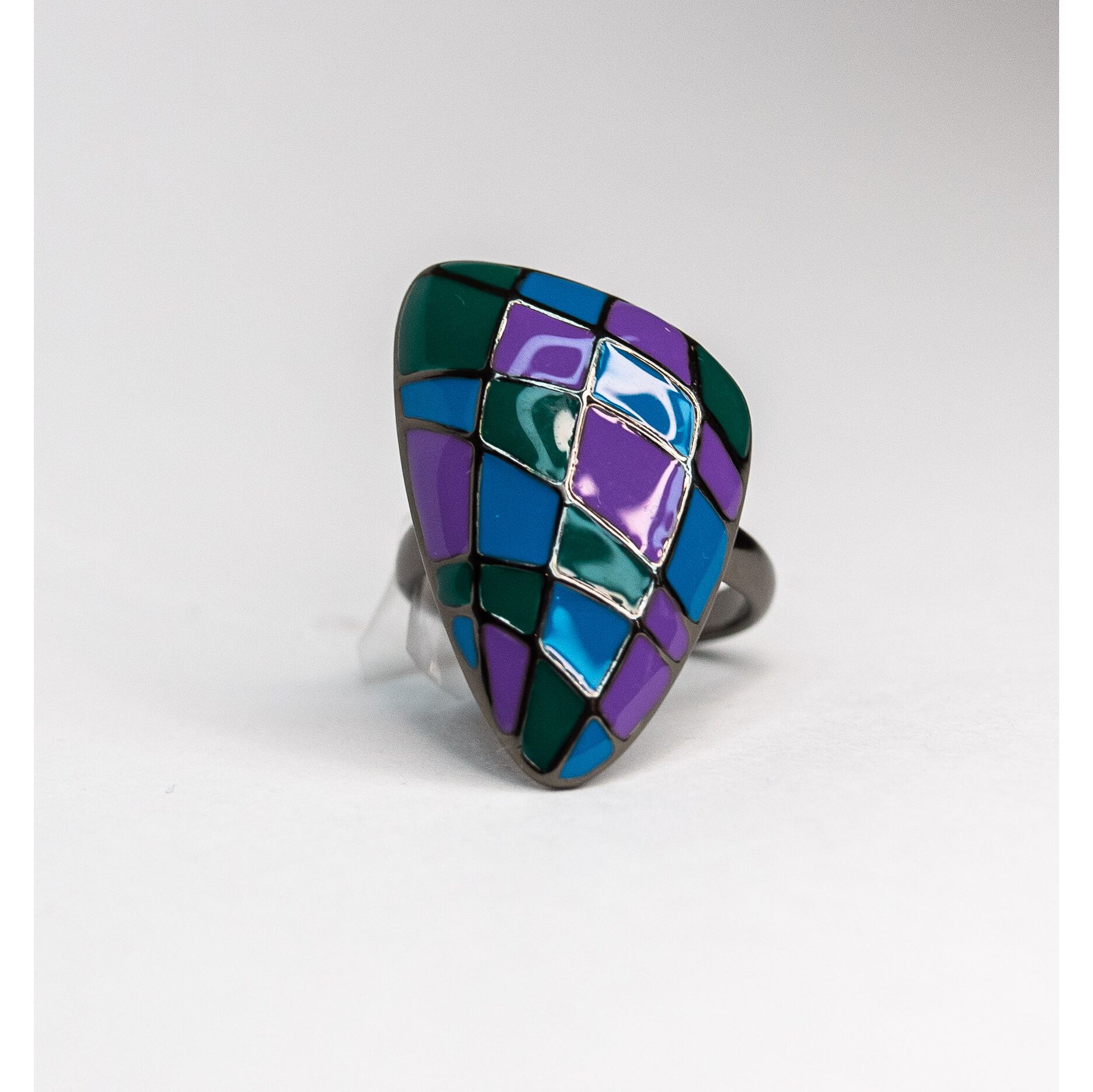 Кольцо женское из гипоаллергенного ювелирного сплава серого цвета. Без вставок. Покрытие эмалью, цвет- голубой, зеленый, фиолетовый Высота кольца-3см, ширина-2см. Размер-18,0.
