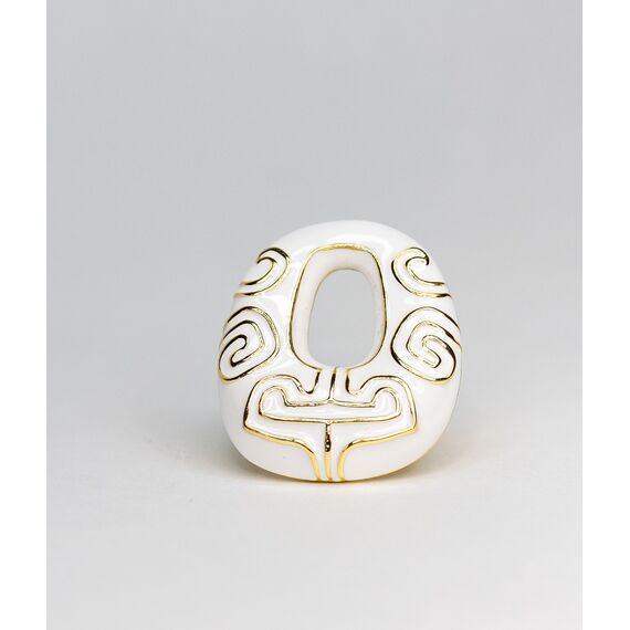 Кольцо из гипоаллергенного ювелирного сплава желтого цвета. Покрытие эмалью, цвет белый. Без вставок. Высота кольца-4,5см, ширина-3,5см. Размер-17,0.