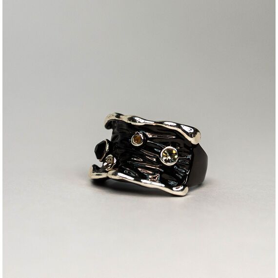 Кольцо из гипоаллергенного ювелирного сплава черного и серого цвета . Вставка- ювелирное стекло, цвет- черный, серый. Высота кольца-1,4см, ширина-2,2см. Размер-18,0.