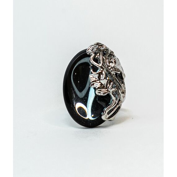 Кольцо женское из гипоаллергенного ювелирного сплава серого цвета. Вставка- улексит( кошачий глаз) , цвет- серый. Высота кольца-3см, ширина-2,5см. Размер-17,0.