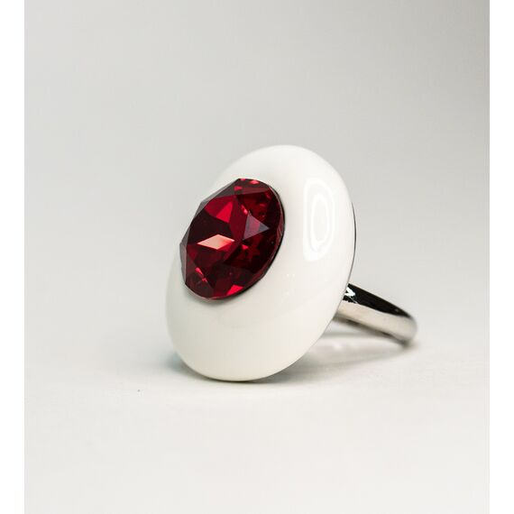 Кольцо женское из гипоаллергенного ювелирного сплава серого цвета. Вставка- ювелирное стекло красного цвета. Покрытие эмалью, цвет- белый. Высота кольца-3см, ширина-2,8см. Размер-18,0.