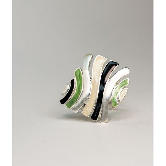 Кольцо женское из гипоаллергенного ювелирного сплава серого цвета. Покрытие эмалью белого, черного и зеленого цвета. Высота кольца-2см, ширина-2см. Размер-17,0.