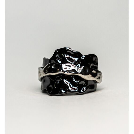 Кольцо из гипоаллергенного ювелирного сплава черного и серого цвета. Высота кольца-2см, ширина-3см.а. Без вставок. Размер-18,0.