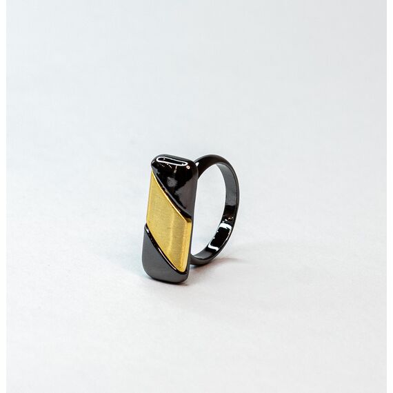 Кольцо женское из гипоаллергенного ювелирного сплава черного и желтого цвета. Без вставок. Высота кольца-1,0см, ширина-2,0см. Размер-17,0.