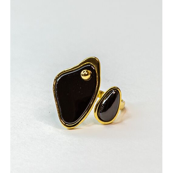 Кольцо из гипоаллергенного ювелирного сплава черного и желтого цвета. Без вставок. Высота кольца - 3см, ширина - 3см. Размер - 18,0.