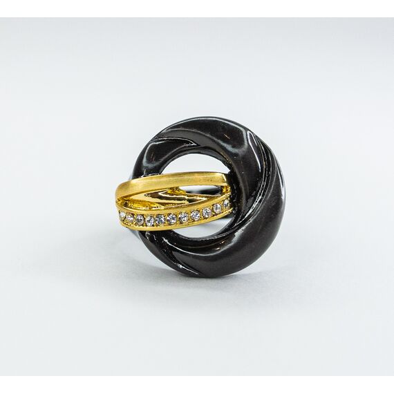 Кольцо из гипоаллергенного ювелирного сплава черного и желтого цвета. Вставка- ювелирное стекло белого цвета. Высота кольца-2,0см, ширина-2,0см. Размер-18,0.