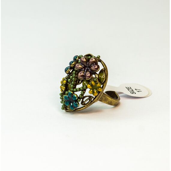 Кольцо женское из гипоаллергенного ювелирного сплава бронзового цвета .Без вставок. Покрытие эмалью, цвет-синий, зеленый, голубой, коричневый. Высота кольца-3см, ширина-2см. Размер-18,0.