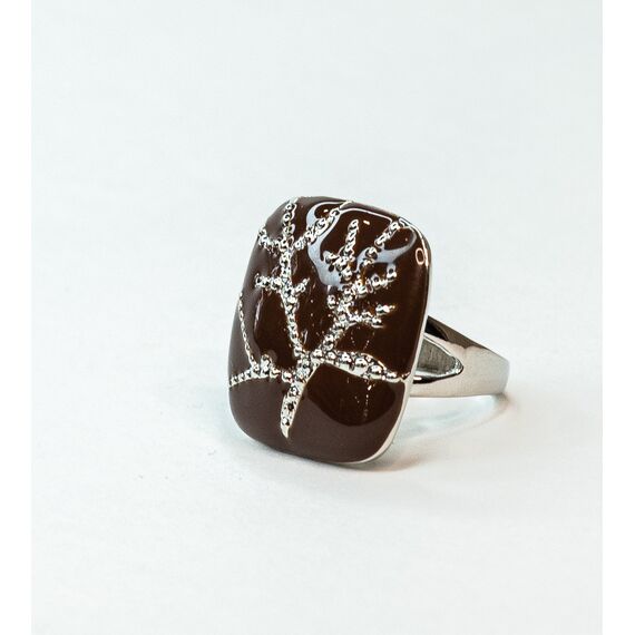 Кольцо из гипоаллергенного ювелирного сплава серого цвета. Без вставок. Покрытие- эмаль коричневого цвета. Высота кольца-2,5см, ширина-2,5см. Размер-17,0.