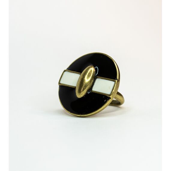 Кольцо женское из гипоаллергенного ювелирного сплава желтого цвета с покрытием эмалью черного и белого цвета. Высота кольца-3,0см, ширина-3,0см. Размер-18,0.