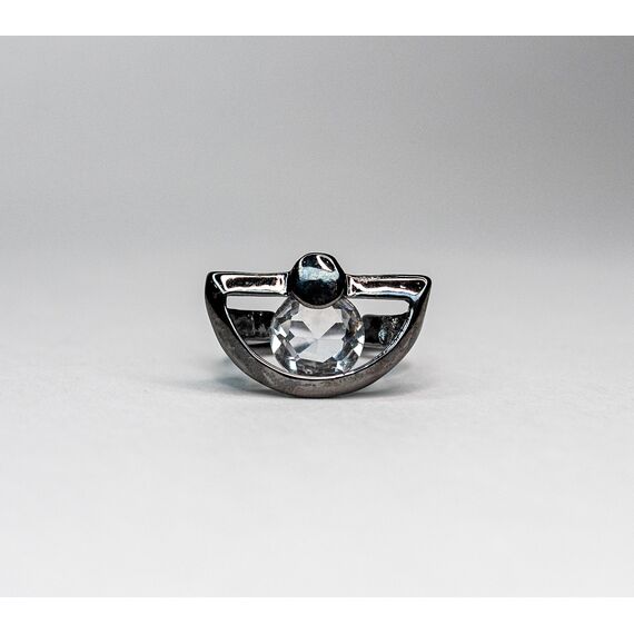 Кольцо женское из гипоаллергенного ювелирного сплава черного цвета. Вставка- ювелирное стекло, цвет- белый. Высота кольца--1,5см, ширина-2,3см. Размер-17,0.