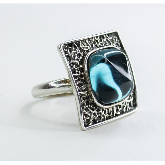 Кольцо женское из гипоаллергенного ювелирного сплава серого цвета. Вставка- улексит( кошачий глаз) , цвет- лондон блю. Высота и ширина кольца-2см. Размер-18,0.