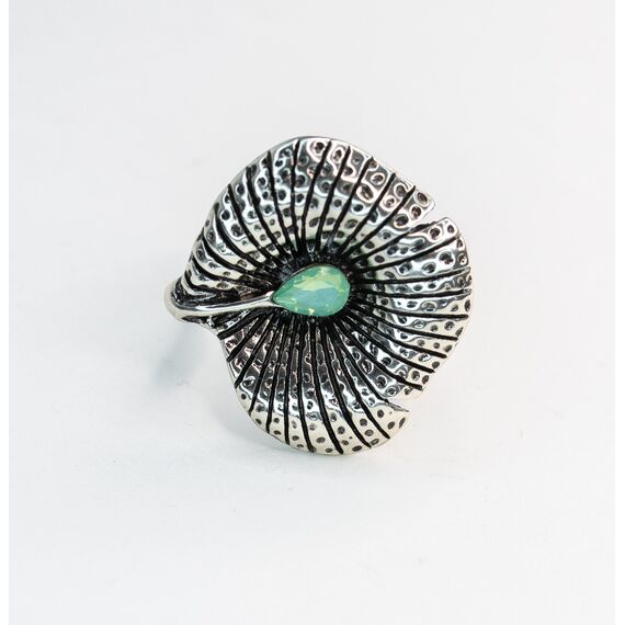 Кольцо женское из гипоаллергенного ювелирного сплава серого цвета. Вставка- ювелирное стекло зеленого цвета. Высота кольца-2,7см, ширина-2,5см. Размер-17,0.