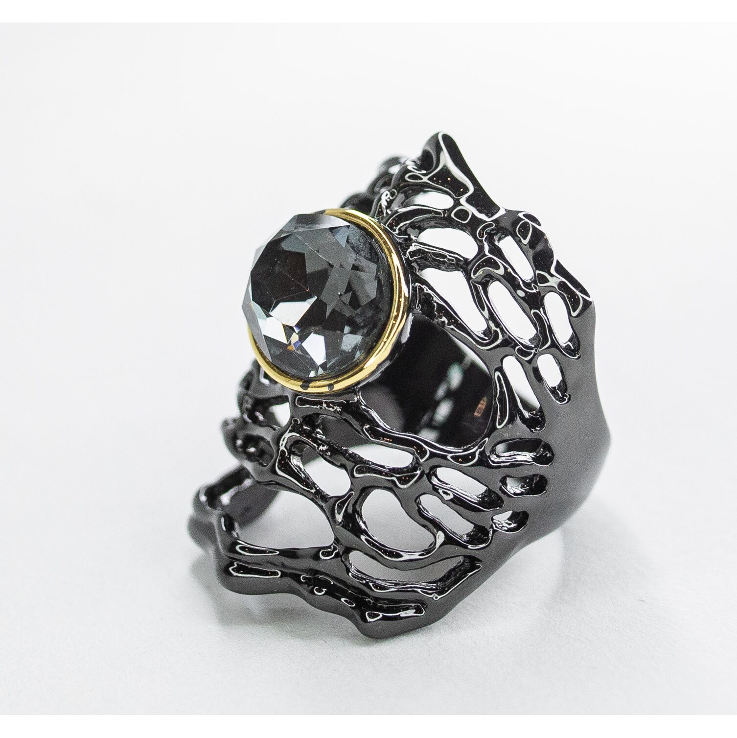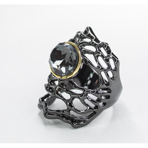 Кольцо женское из гипоаллергенного ювелирного сплава черного и желтого цвета. Вставка- кварц, цвет- серый. Высота кольца-3,0см, ширина-2,0см. Размер-18,0.
