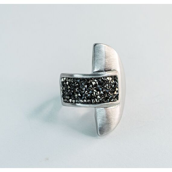 Кольцо из гипоаллергенного ювелирного сплава серого цвета. Вставка-ювелирное стекло, цвет-серый. Высота кольца-3см, ширина-2,5см.Размер-18,0.