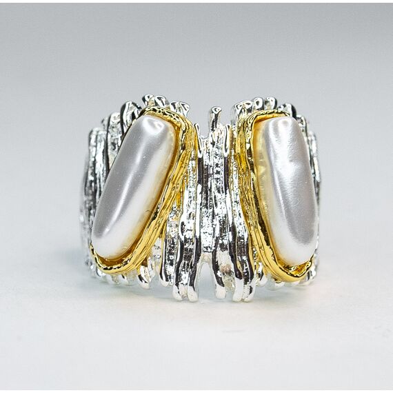 Кольцо из гипоаллергенного ювелирного сплава ,цвет- желтый,серый. Вставка- иск.жемчуг белого цвета.Размер-19,0 ,ширина кольца-2см.