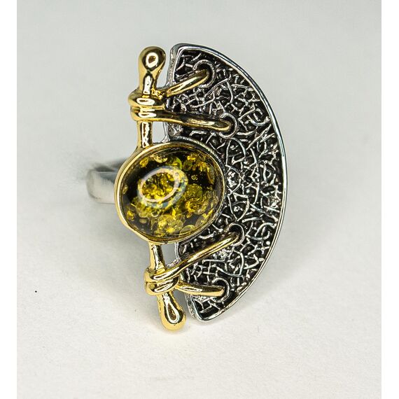 Кольцо из гипоаллергенного ювелирного сплава желтого и серого цвета . Вставка- янтарь, цвет- желтый.. Высота кольца-2см, ширина-3,5см. Размер-17,0.