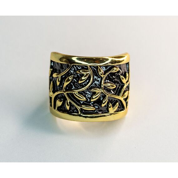 Кольцо женское из гипоаллергенного ювелирного сплава черного и желтого цвета. Без вставок. Высота кольца-1,8см, ширина-2см. Размер-18,0.