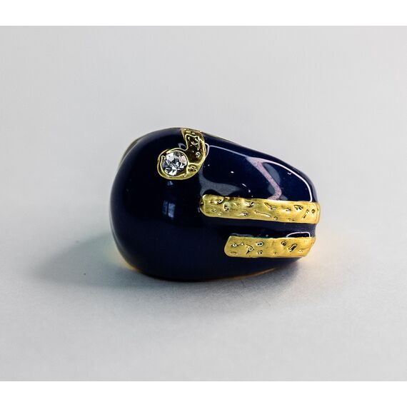 Кольцо из гипоаллергенного ювелирного сплава желтого цвета . Вставка- ювелирное стекло белого цвета. Покрытие эмалью,цвет- синий. Высота кольца-1,5см, ширина-3,см. Размер-17,0.