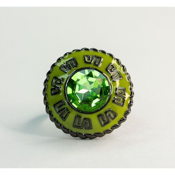 Кольцо из гипоаллергенного ювелирного сплава черного цвета . Вставка- ювелирное стекло зеленого цвета, диаметр камня-1см. Покрытие эмалью,цвет- зеленый. Высота кольца-2см, ширина-2см. Размер-18,0.