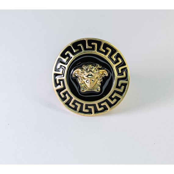 Кольцо из гипоаллергенного ювелирного сплава желтого цвета. Без вставок. Покрытие эмалью черного цвета. Высота кольца-3см, ширина-3см. Размер-18,0.